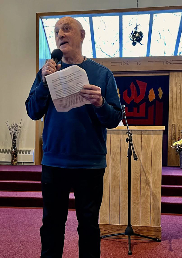 On Sunday afternoon, continuing the celebration of HIAS, the Beth El Sanctuary Committee hosted a Coffee House featuring eight speakers who shared personal stories with the theme “A Time When I Took a Stand / A Time When I Stood Up.” Speakers included Elaine Barnartt Goldstein, Michael Jacoby Brown, Bernard Horn, Lisa Kouchakdjian, Diego Low, Carl Offner, Ira Silver, and Roberta Unger.